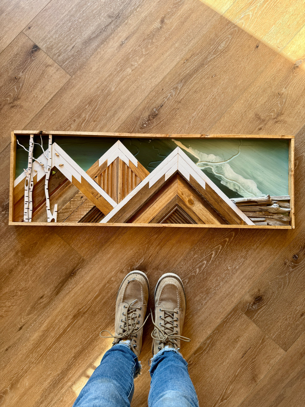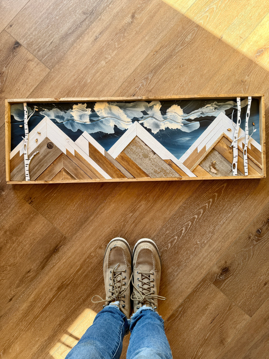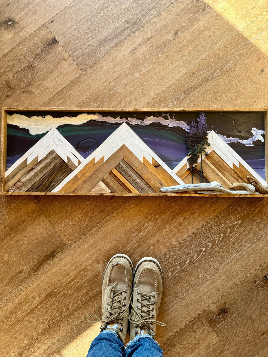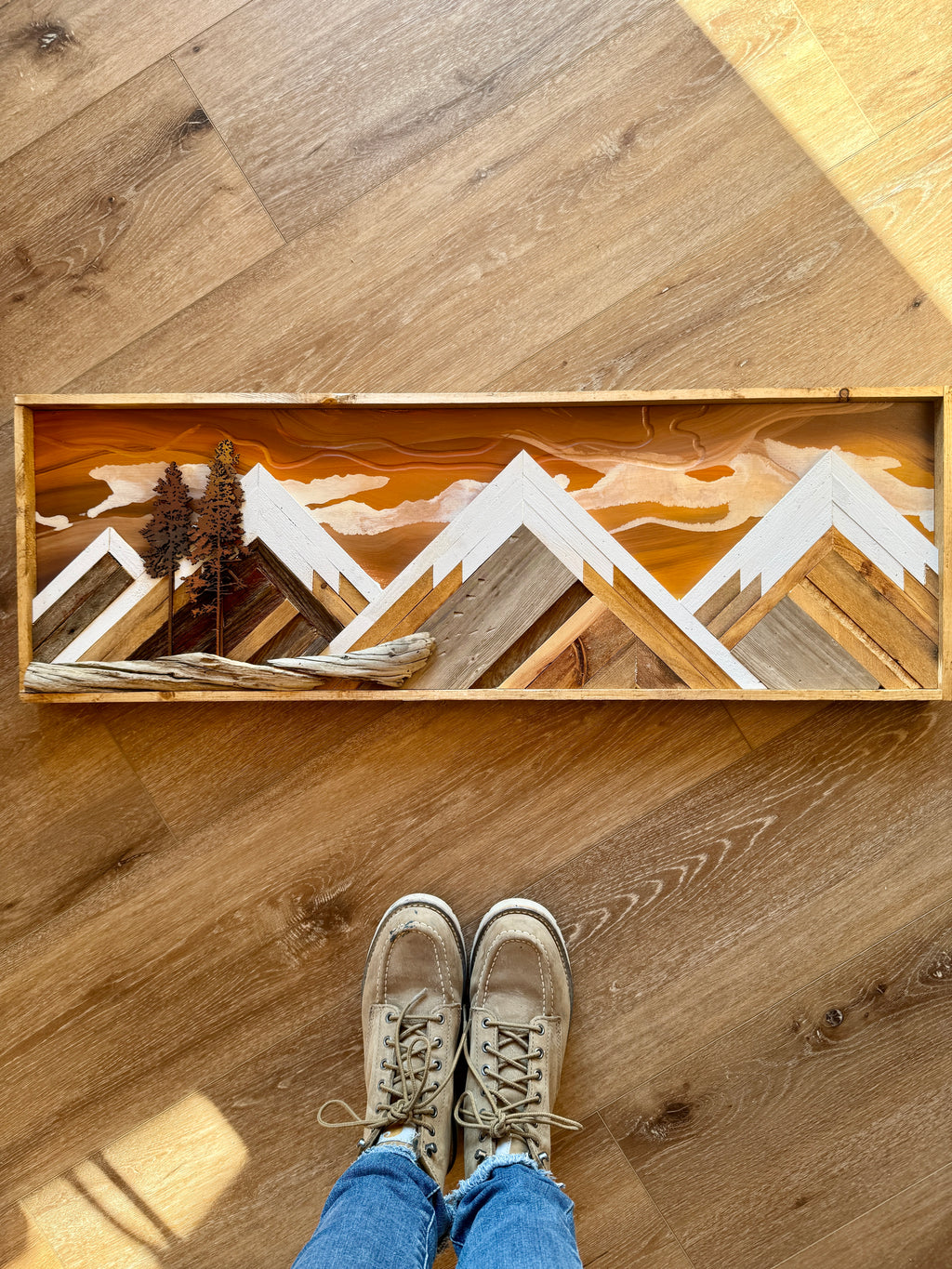 Bring the majesty of nature into your space with these stunning mountain scenes crafted from reclaimed wood. At 36 by 12 inches, they are sized perfectly to command attention above a sofa, bed, or entryway. Each piece is thoughtfully created with care, transforming salvaged materials into rustic wall art that tells a story. Whether you're drawn to outdoor aesthetics or seeking a conversation-starting focal point, this handcrafted mountain landscape delivers warmth and character that mass-produced décor simply cannot match.